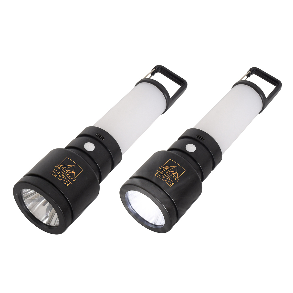 The standing or hanging carabiner design works great in lantern mode spreading a warm wide light on table top, or overhead.