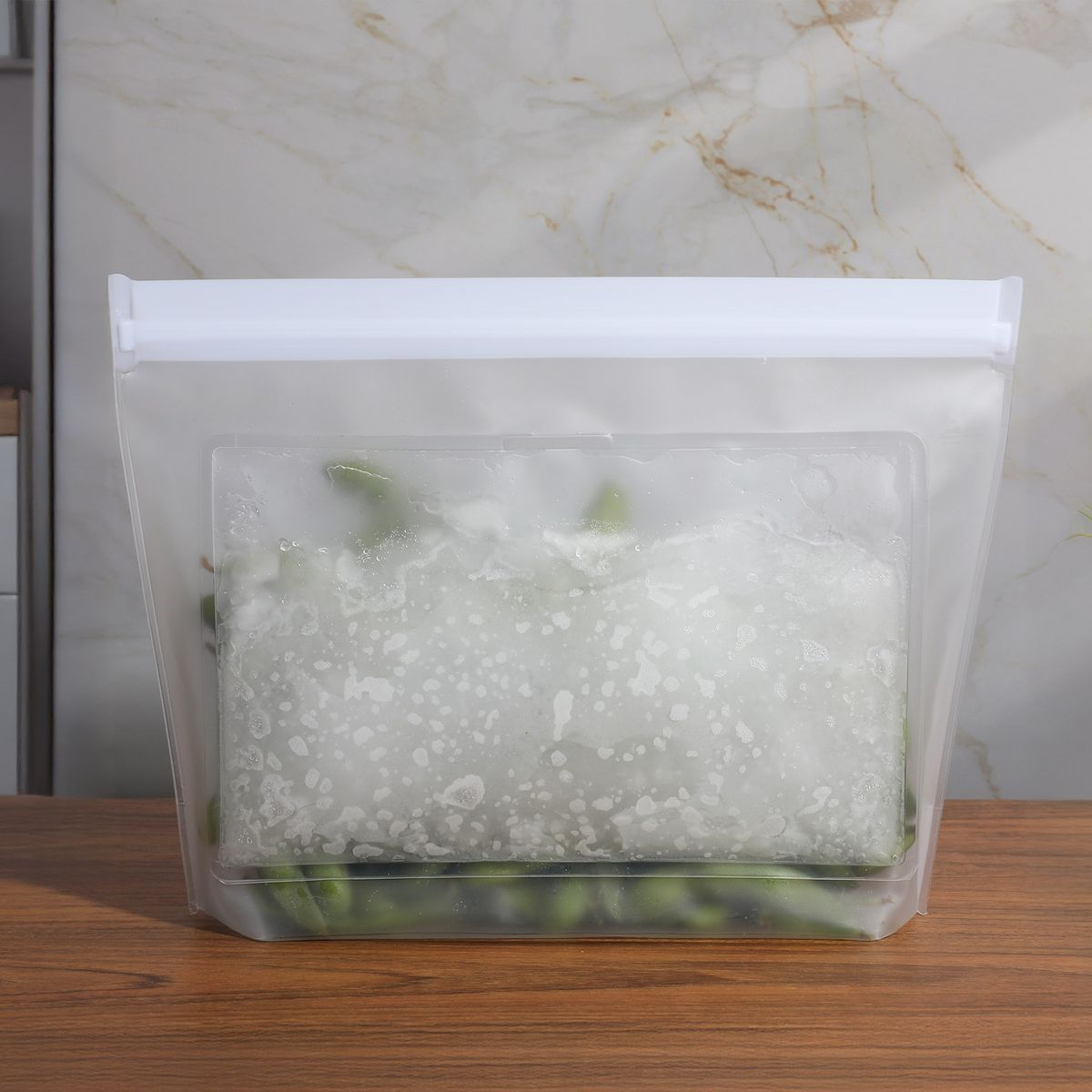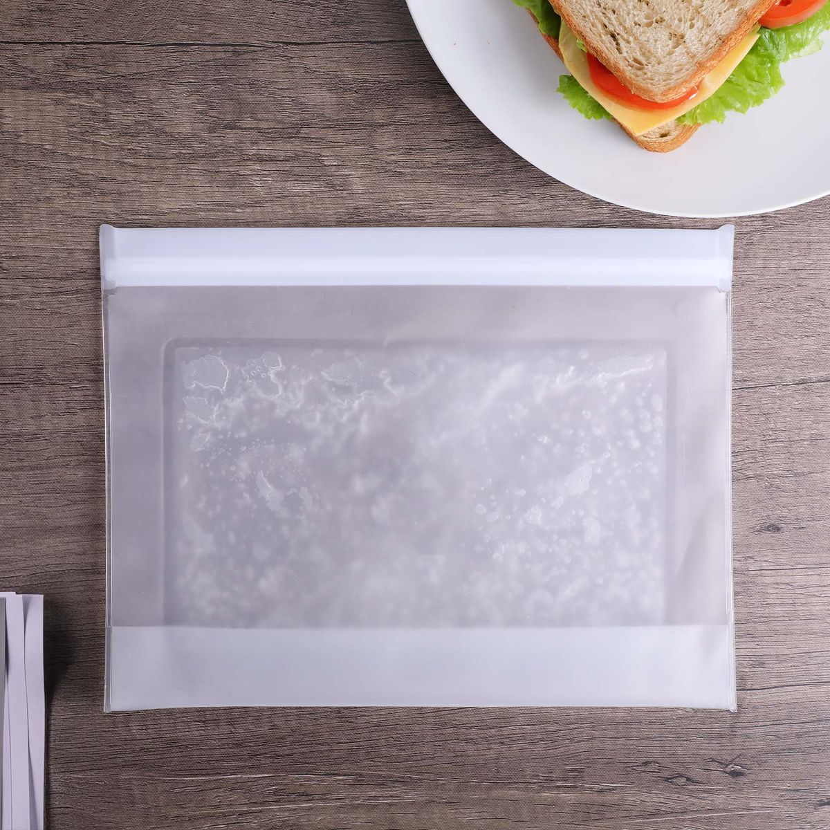 Cut down on single-use plastic waste with this reusable PEVA food storage bag. Simply freeze the built-in gel pack to keep sandwiches, fruits, veggies, and snacks cool on the go. Safe for both the refrigerator and freezer, it's perfect for lunches, picnics, and travel. Made without BPA, PVC, phthalates, or lead. Meets FDA requirements. Hand wash only. Do not microwave.
